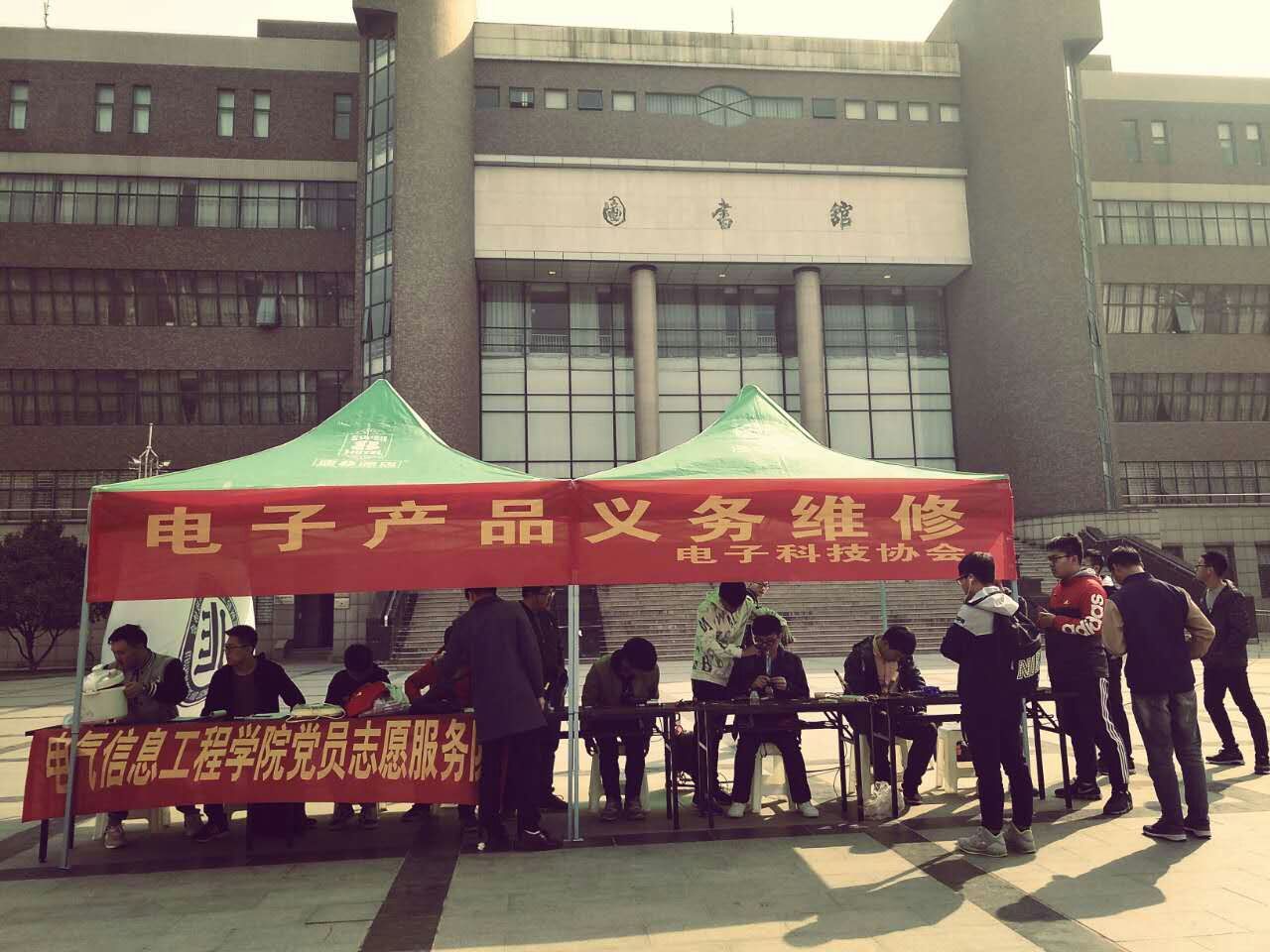 3月5日是第55个学雷锋纪念日,也是中国青年志愿者服务日。为了引导我院广大青年学子继承优良传统,弘扬雷锋精神。电气信息工程学院党员先锋队、科技创新工作室、电子科技协会组织志愿者在我校东风校区和学生第二生活园区开展“家电义务维修活动”。
