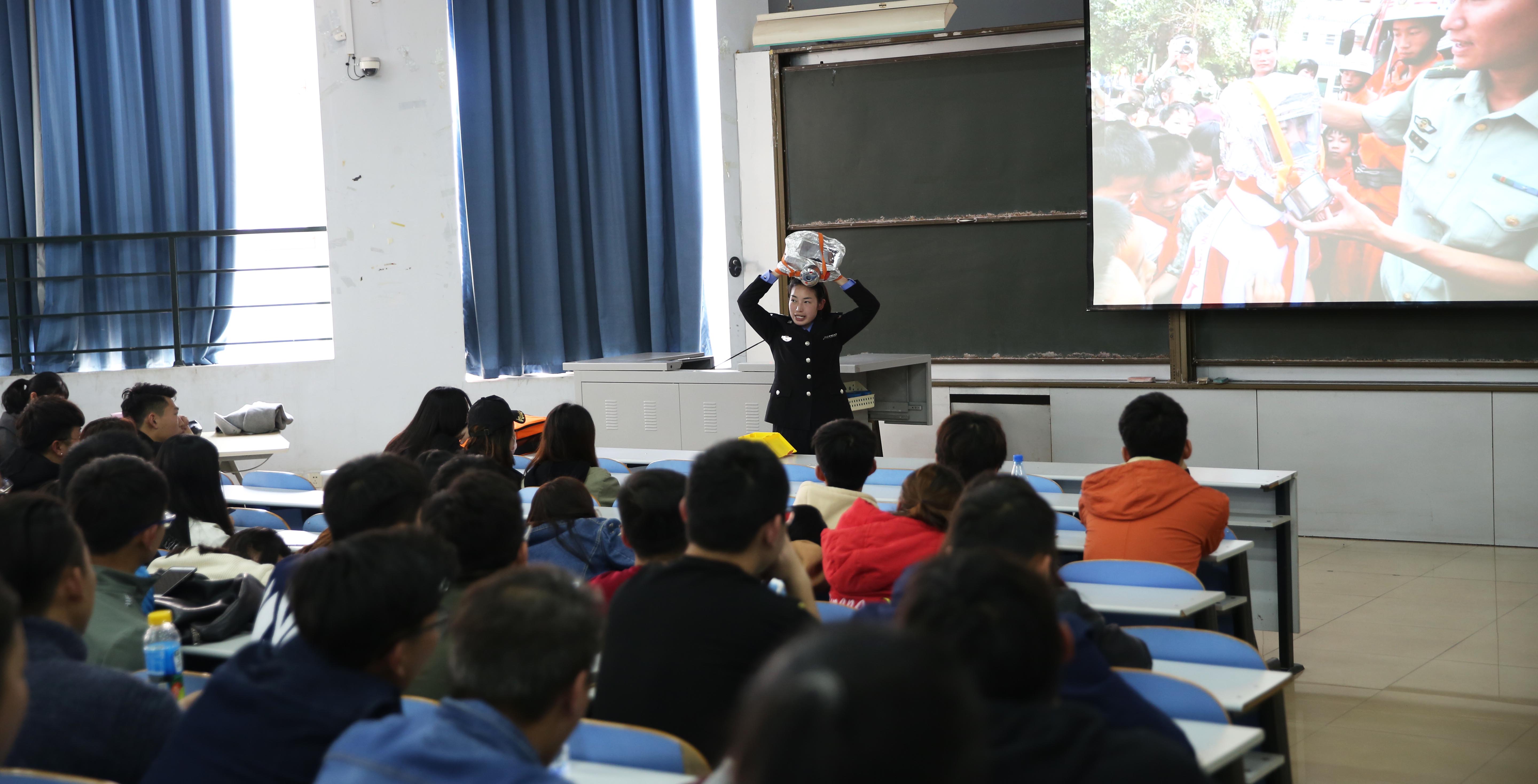 本次讲座特别邀请了郑州市消防支队的靳教官主讲。讲座现场,靳教官提出了“预防为主,防消结合”的主旨理念,并结合鲜活实例,展示了触目惊心的火灾实景,从防火、灭火、逃生、自救等多个方面深入浅出地介绍了火灾的形成过程、火场中易出现的延误逃生时机的误区、自救逃生以及灭火器、防毒面具等防火工具的操作使用方法等一系列防火安全知识。一幕幕令人心痛的历史,一条条用生命换来的经验教训让在场同学深受教育。