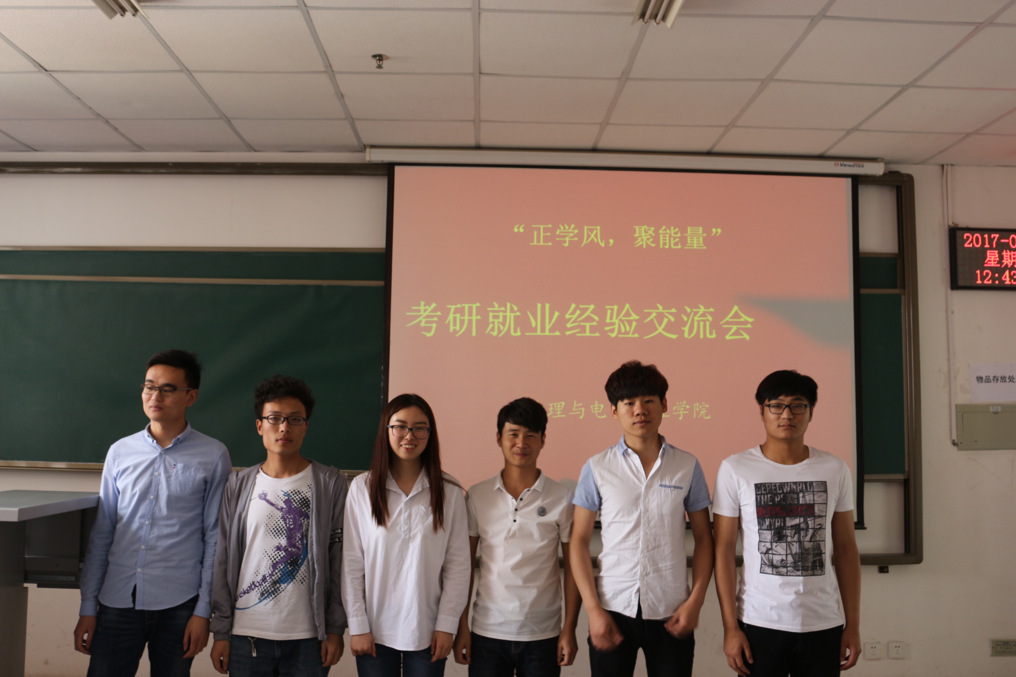 为了促进我院学风建设,激发同学们对考研的热情,帮助同学们明确本专业的就业方向和发展前景。5月4日中午,物理与电子工程学院“正学风 聚能量”考研就业经验交流会在二教楼704召开。2017届成功考取研究生和就业的毕业生代表们向全院学生进行了经验的分享。