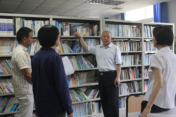在汇报会后,纪委书记张晓根教授考察了外国语学院图书资料室、韩国文化体验室、同声传译室,了解硬件支撑条件下的文化创新情况。