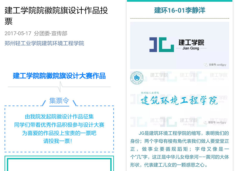设计大赛分为初选和复选两个阶段,采用线上线下相结合的方式进行。初选阶段通过大赛组委会对投稿作品的整理和筛选,共选出10部作品参加复选。复选以PPT演讲的形式展开,同时加入了微信投票的环节。在活动中,各位参赛选手从图案、色彩、寓意等方面详细地介绍了自己的设计理念,作品各具特色,融合我院建电、建环、安工三个专业特点,充分体现了我院的人文精神与治学理念,且具有较高的辨识度与代表性。作品构图简洁明快,大方得体,色彩搭配协调、鲜明,富有寓意,有一定的深度和创意性,具有较强的视觉冲击力,易于识别和传播。大赛最终将综合评委打分和微信投票,采用优秀作品作为我院的院徽和院旗。