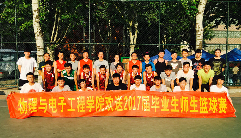 为做好我院2017届毕业生的教育工作,营造文明、活泼的校园文化氛围,5月25日下午,物理与电子工程学院欢送2017届毕业生师生篮球友谊赛在校篮球场展开。