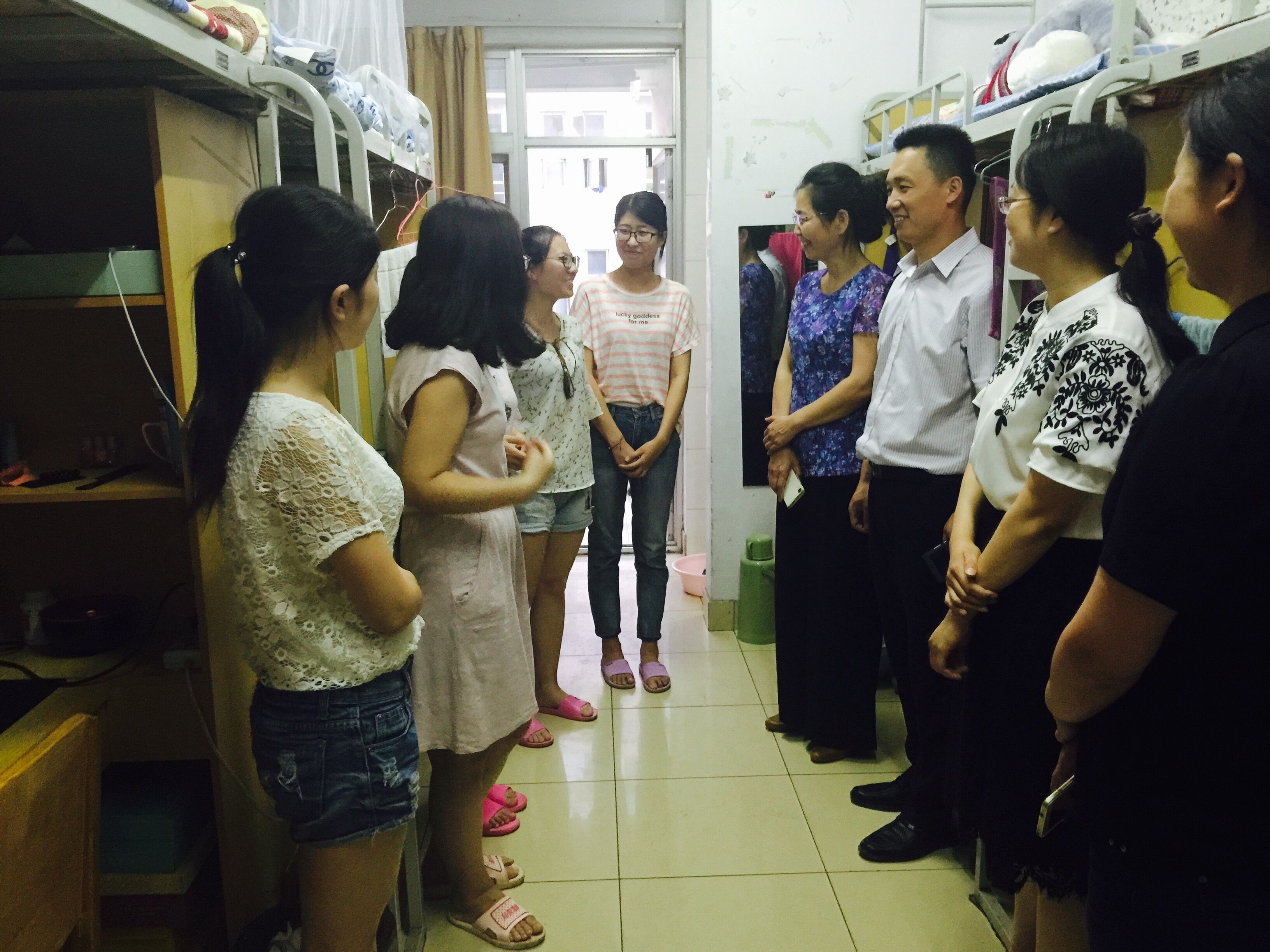 为了进一步了解我院毕业生的思想状况和学习生活实际,深入做好毕业生的各项教育服务工作,6月1日晚上,物理与电子工程学院党总支书记朱晓东、院长苏玉玲、党总支副书记李玲和辅导员老师走访了毕业生宿舍,为即将离开母校的毕业生送去了深切的关怀和美好的祝愿。