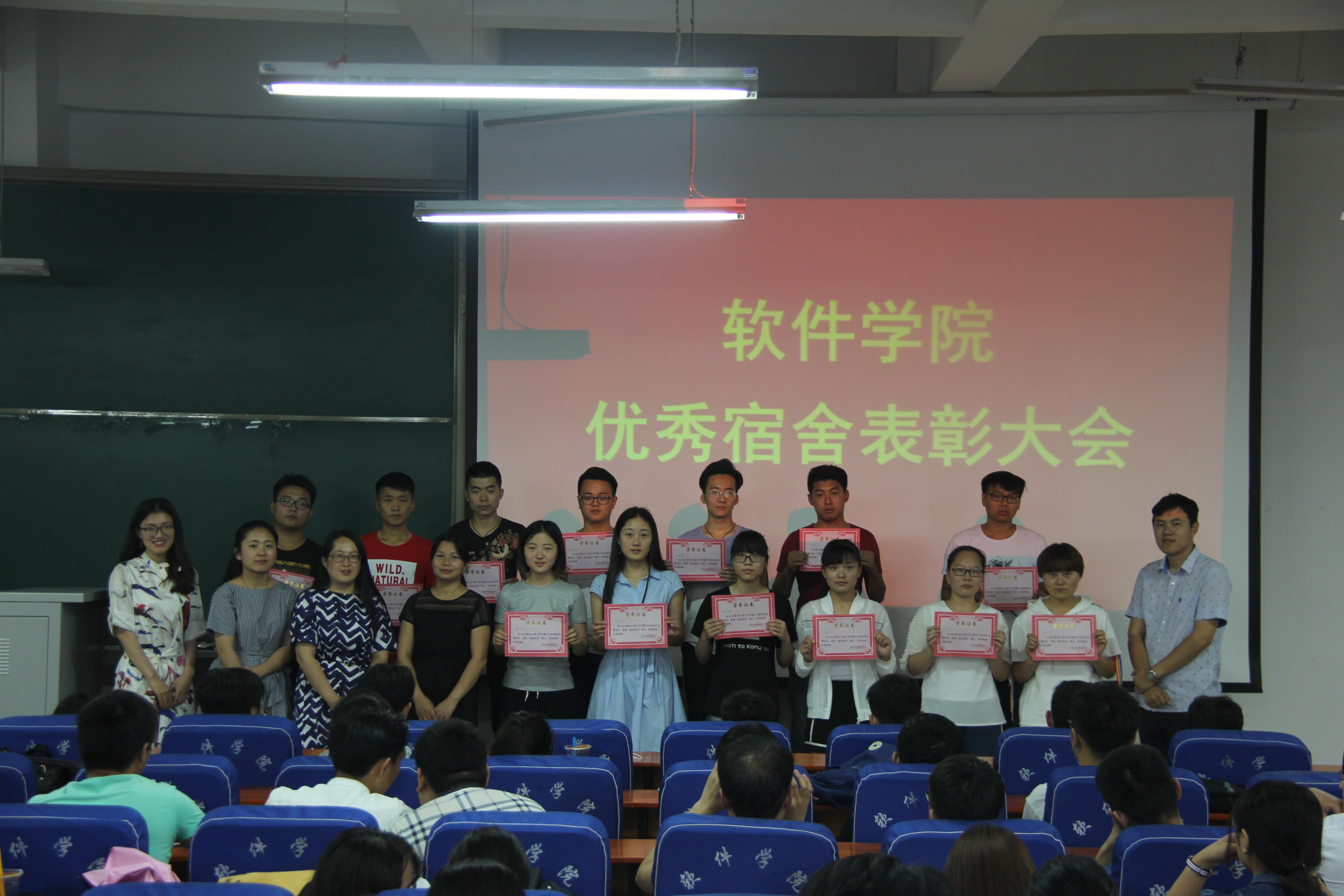 6月2日下午,软件学院在软件楼219室举行2016-2017学年第一学期优秀宿舍表彰大会,学院辅导员老师出席表彰会并为获奖宿舍颁奖。