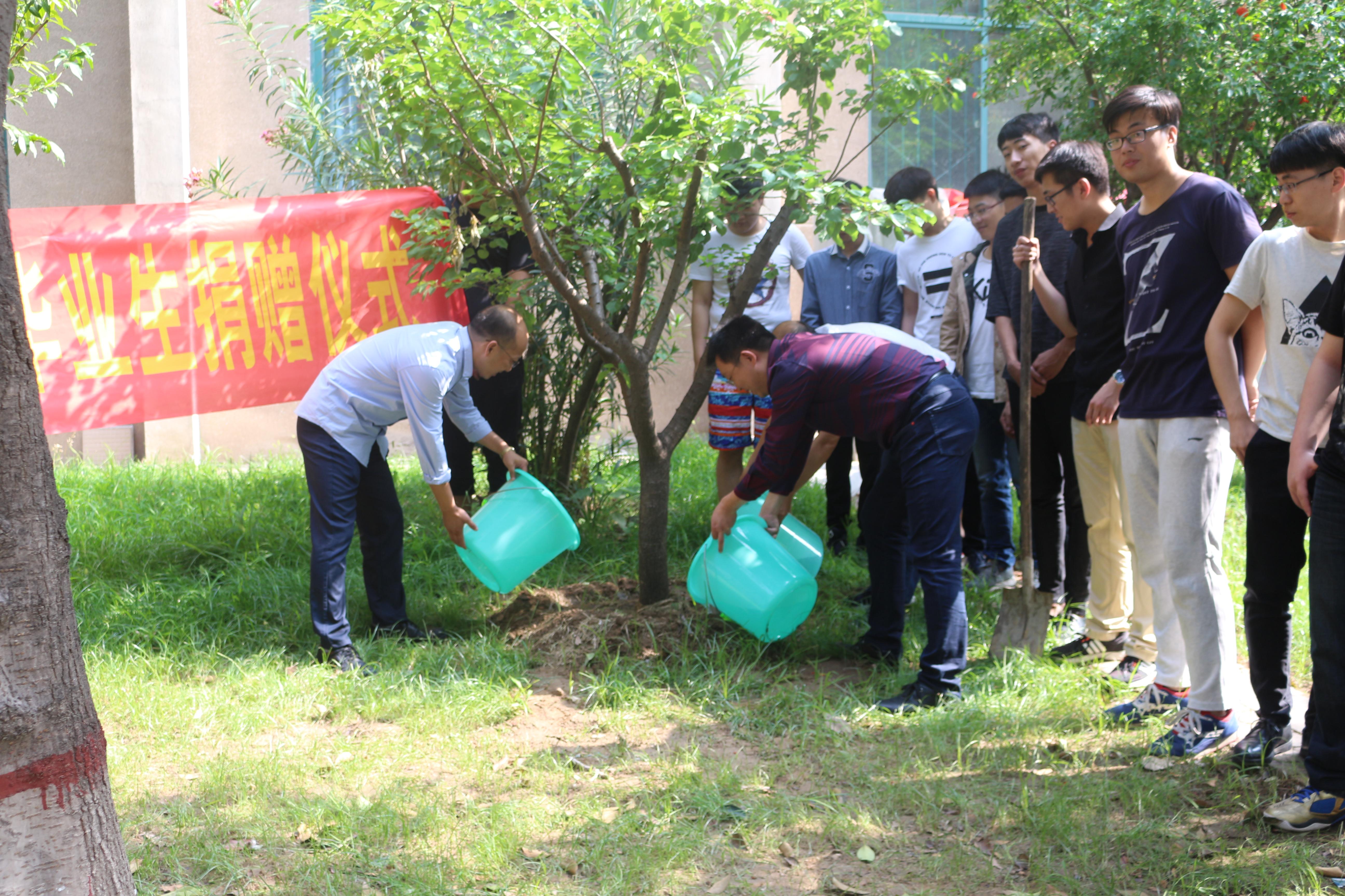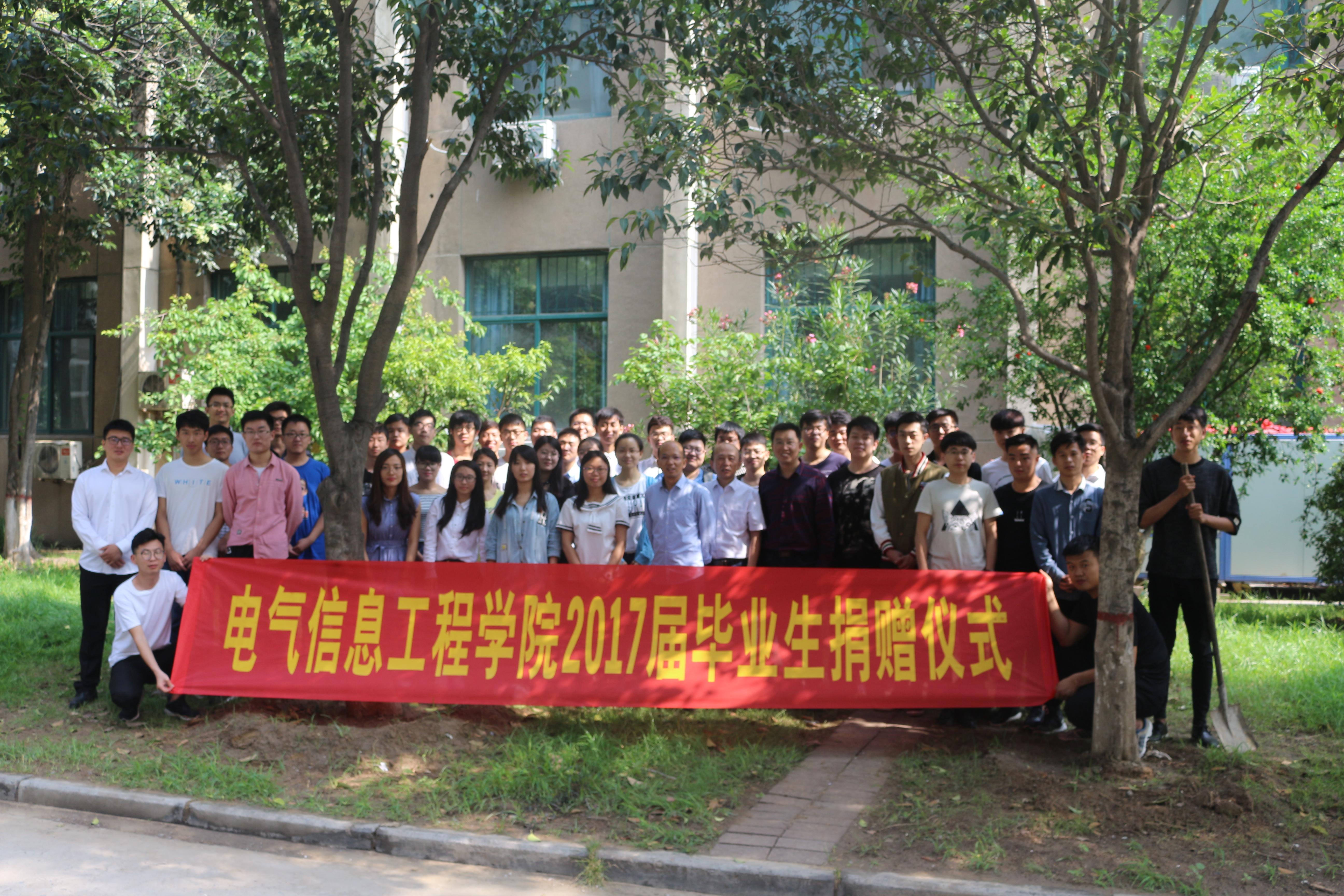 为母校捐赠树木,表达了莘莘学子对母校的一片真挚的祝福和深厚的感情,同学们表示:自从进入电气信息工程学院的第一天起,我们的成长、前途和人生就已经和学院密不可分,毕业后无论走到哪里,都将像所捐赠的树木的根系一样,永远紧紧地跟母校连在一起。我们由衷地祝愿母校明天更美好!”