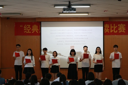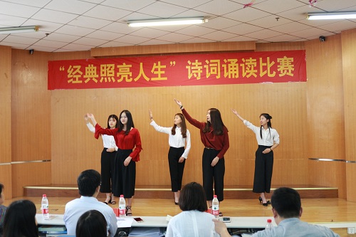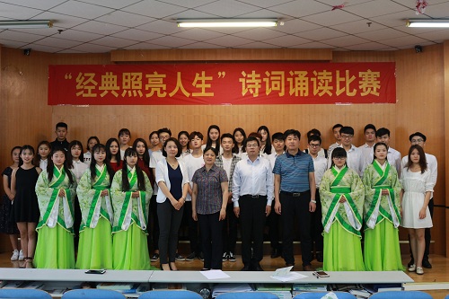 6月8日,由教务处、校团委、外国语学院主办的第24届科技文化艺术节之“经典照亮人生”诗词诵读比赛在教三楼103教室举行。校团委书记葛勋、教务处副处长阮世敏、外国语学院党总支副书记孔祥娟、副院长周麦成出席活动。