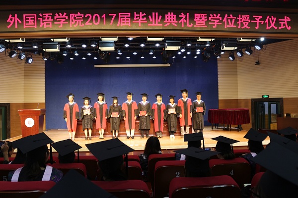 6月15日上午,外国语学院2017届毕业典礼暨学位授予仪式在教一楼107隆重举行。学院党政领导出席典礼并为全体学生拨穗正冠。学院2017届全体毕业生怀着喜悦而激动的心情,经历了人生中具有里程碑意义的仪式。毕业典礼由孔祥娟副书记主持。