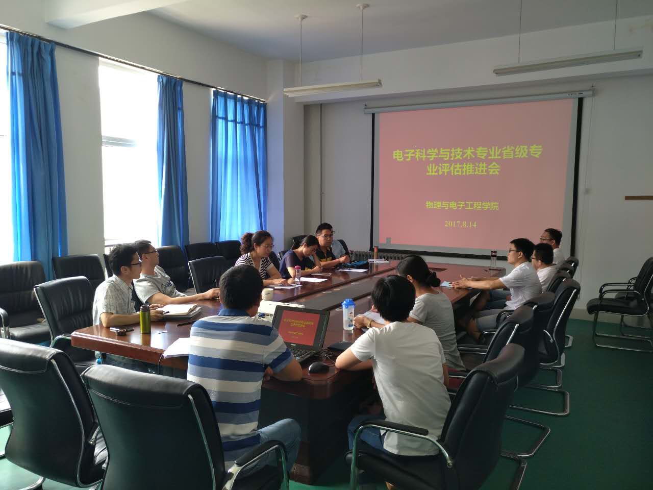 8月14日上午,物理与电子工程学院在科学校区学生活动中心300会议室召开河南省本科专业评估工作推进会,学院领导班子成员、电子科学与技术专业正副主任、系部骨干教师等参加了会议。会议由王永强副院长主持。