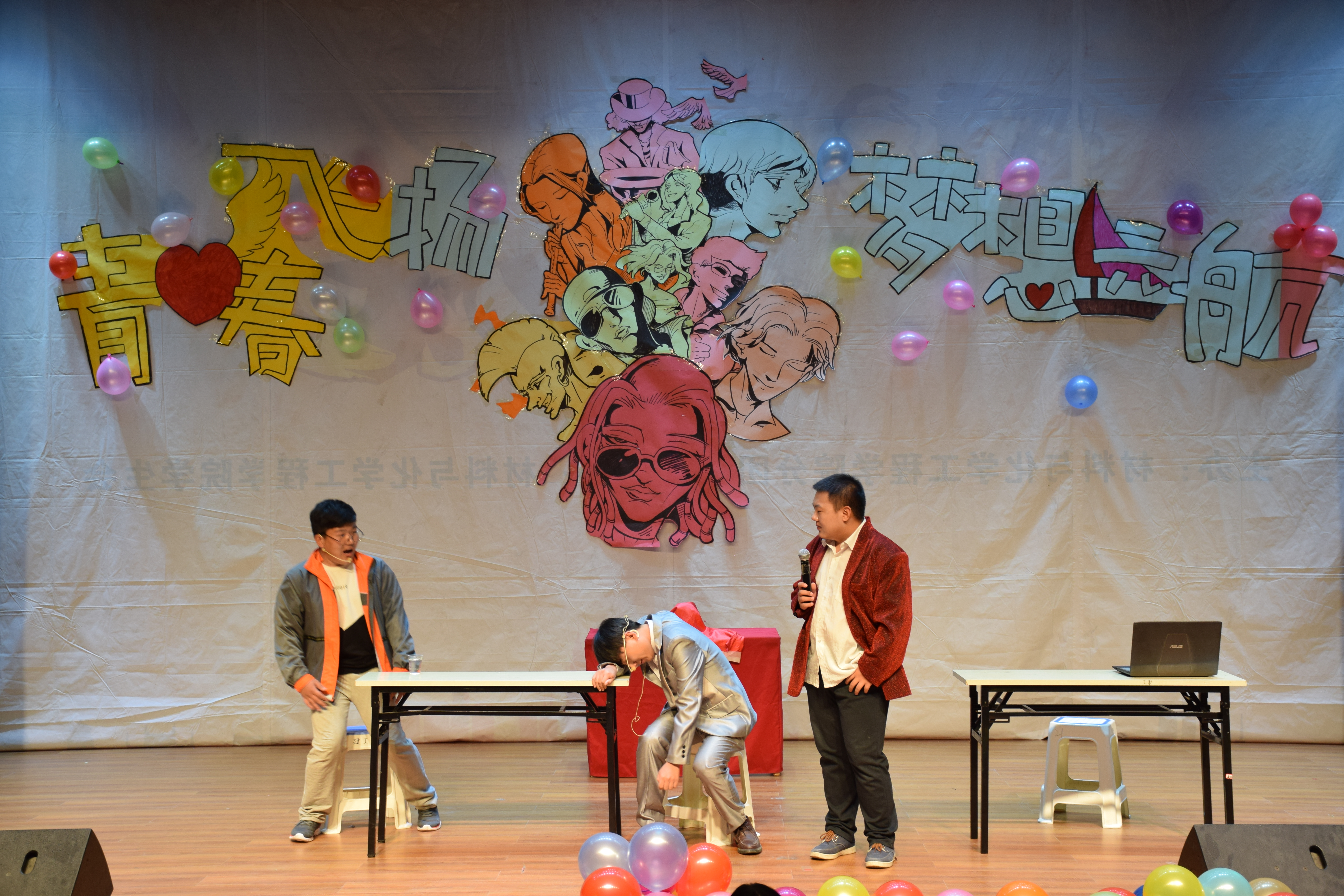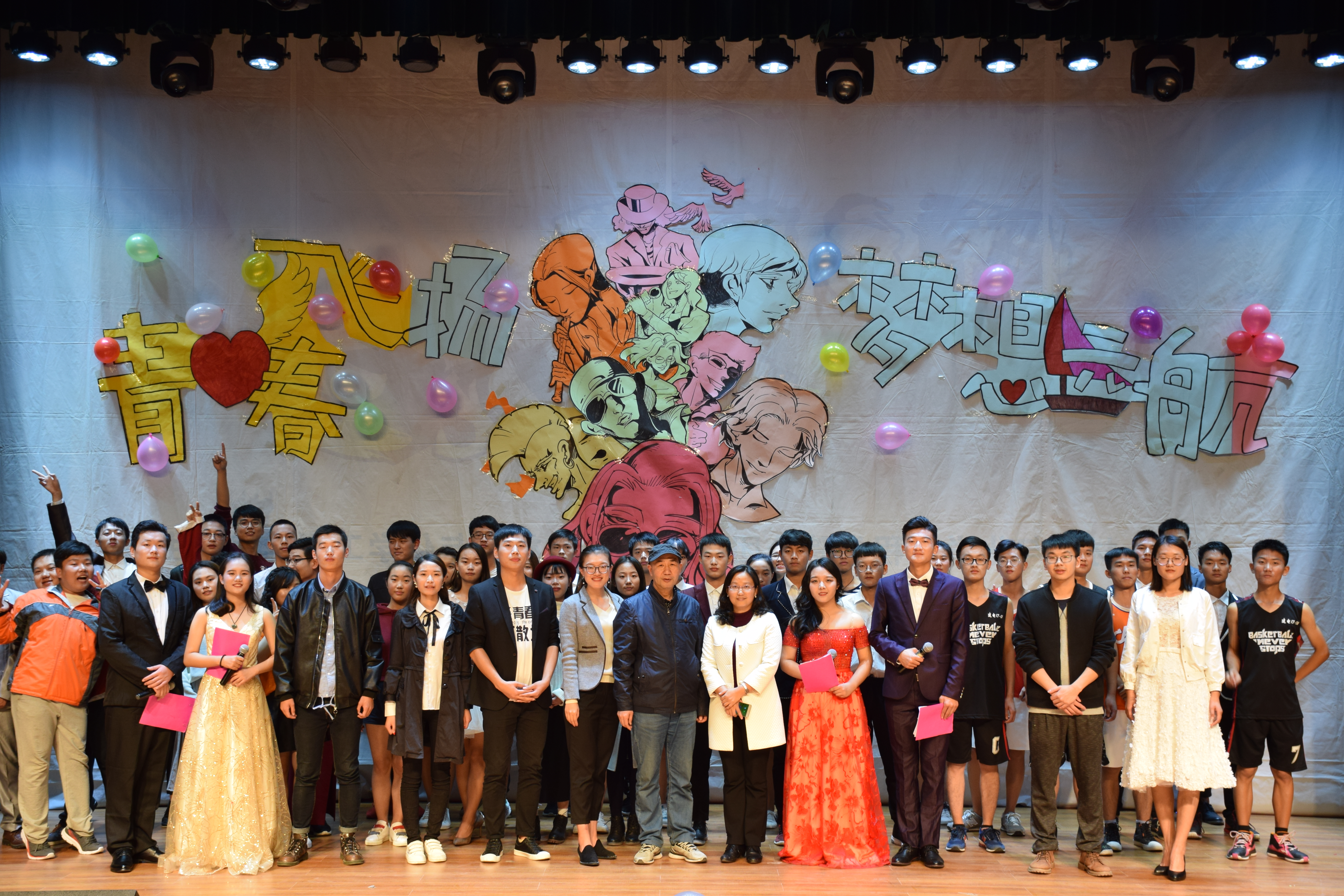 火热的青春,激情飞扬;五彩的梦想,绚丽缤纷。灿烂的微笑,朝气蓬勃;曼妙的身姿,魅力四射。伴随着强劲的音乐声,演出在街舞《The Magic Show》中拉开序幕。整场演出综合了街舞、诗朗诵、歌曲、相声、小品、吉他弹唱、T台秀等表演形式,为观众带来了一场视听盛宴。舞蹈《咖喱咖喱》为观众展现了异域风采,诗朗诵《致青春》歌颂了青春的自由与奔放,相声《哭的艺术》风趣幽默地表达了生活的艺术,吉他弹唱《天使的翅膀》唱出了爱的温暖,爵士舞《南北极》展现了青春的跃动与活力,小品《外卖奇遇记》绘声绘色的表演让人忍俊不禁,绚丽的T台秀《Look What We Do》引爆全场,最后,一首《我的未来不是梦》为本场演出画上了圆满的句号。歌舞声中饱含着同学们的铿锵自信与对未来的无限希望,绽放着青春与梦想的光芒。在演出进行的同时学院还发起微信大屏幕互动,大家热烈响应,现场气氛热烈活跃,演出期间学院更是为观众准备了丰富的礼品。
