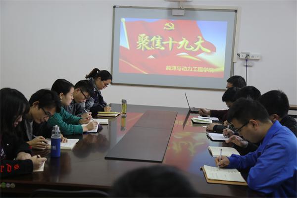 11月8日上午10点,能源与动力工程学院在407会议室召开了学习十九大精神专题会议,学院党总支副书记李俊丰老师、研究生党支部书记王耿华老师,学工办主任宋正凯老师、研究生辅导员王霄老师及全体研究生参加了此次会议。