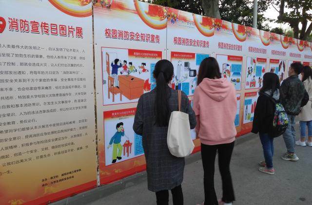 11月6日至10日,学生通过消防安全展板、消防宣传页等形式,进一步了解了教室、宿舍、食堂、实验室等场所的消防安全知识和火场逃生自救的方法。
