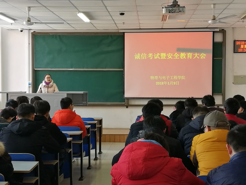 为进一步加强学院期末考试诚信教育,营造良好的考试氛围,提高同学们的安全防范意识。近期物理与电子工程学院各年级辅导员召开了诚信考试暨安全教育系列会议。