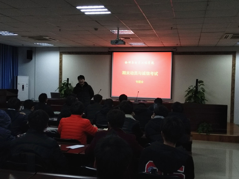 会上,各年级辅导员老师带领同学们认真学习了《郑州轻工业学院考场规则》、《郑州轻工业学院学生违纪处分管理规定》和《郑州轻工业学院授予学士学位的暂行实施细则》(修订)等相关规定,强调了诚信考试的重要性。同时就考试作弊后果的严重性告诫大家,要求同学们积极复习,认真对待考试,自觉规范考试行为,诚信考试,杜绝作弊,考出自己的真实水平,并让每位同学填写了《考试舞弊零目标承诺书》。最后,辅导员老师结合宿舍安全、交通安全、网络信息安全等方面的安全知识做了深层次的分析,要求同学们时刻提高安全防范意识,增强法律意识,保持警惕心。