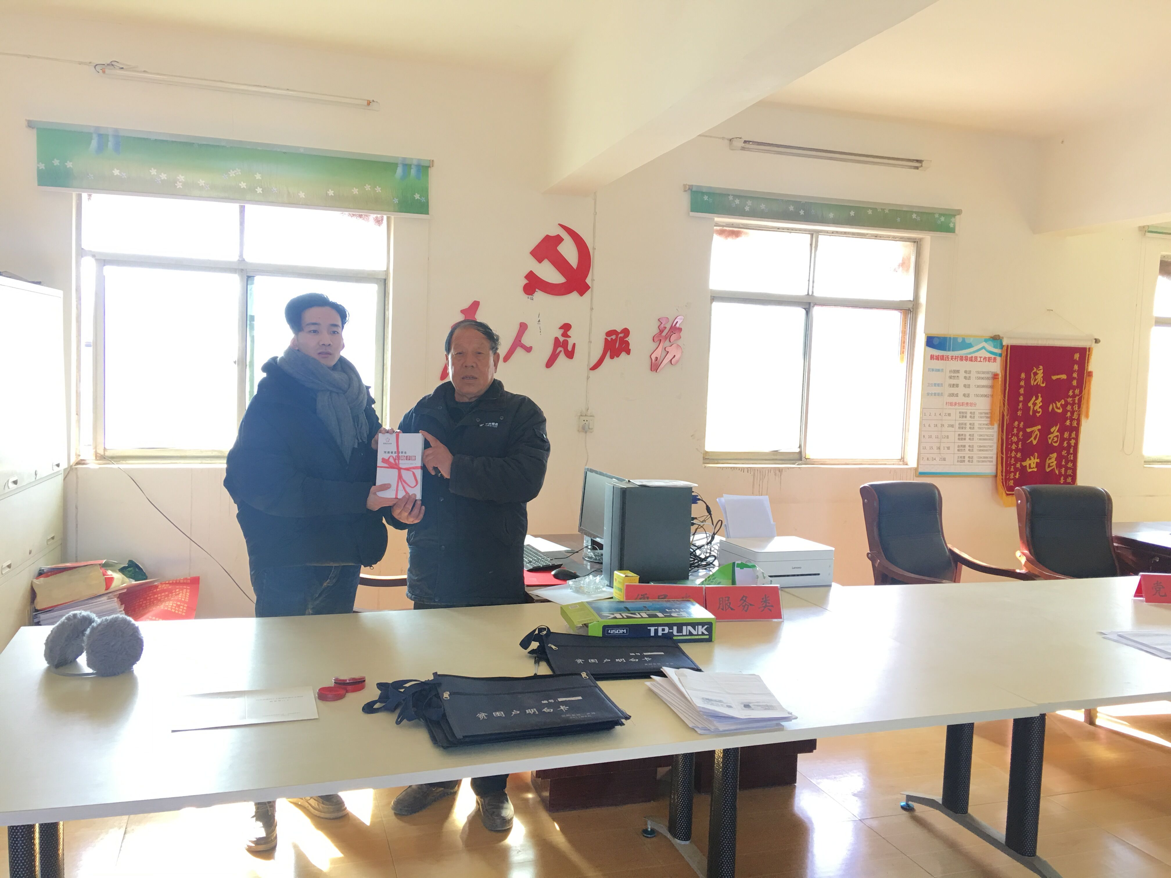 首先,各位受助学生志愿者向家乡单位详细介绍了国家针对高校的相关资助政策,并结合自身受助情况,讲述了自己在国家资助政策的帮助下是如何得以安心学习、健康成长的故事。然后,受助学生志愿者将《河南省高校学生资助手册》捐赠给其所在的居委会、村委会以及高中母校,以此激励在场的学弟学妹们要把握好时间,努力学习,希望他们能够刻苦学习,实现理想,立志为社会、为国家贡献自己的力量,同时也要牢记党和国家对于贫困学子的关怀和支持。最后,受助学生志愿者和受捐赠单位负责人合影留念。