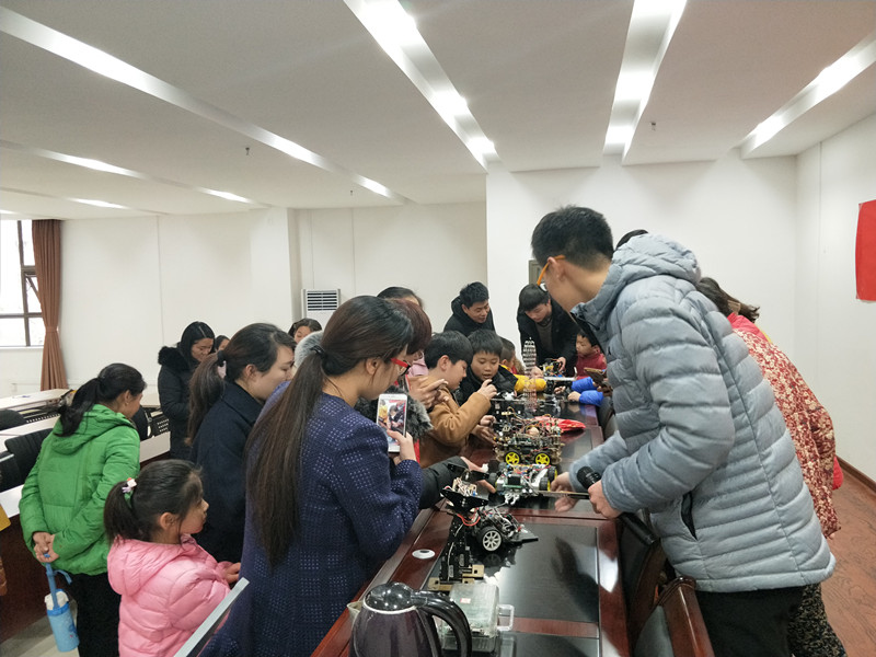 在社区工作人员的引导下,我们向社区居民展示了学院电子实验室的自制机器人、无人飞机、智能小车等大学生科技创新作品。活动现场,志愿者们详细讲解了科技创新作品的工作原理以及工作方式,吸引了很多社区居民的参与,尤其有很多小朋友及家长认真观看并询问关于机器人、无人飞机及智能小车的相关知识,志愿者们耐心解答并一一演示,赢得了社区居民的一致好评。