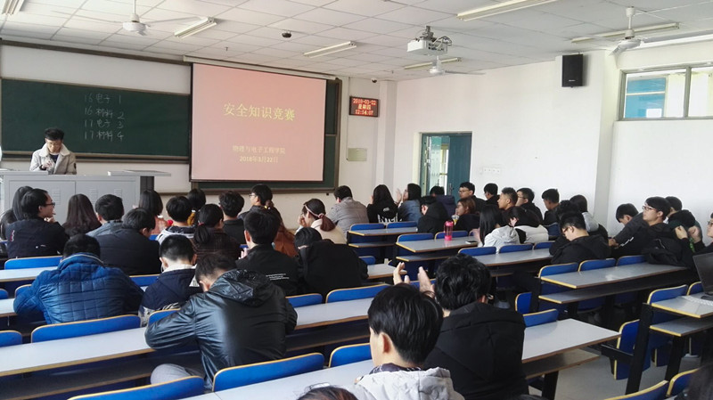 为普及安全知识,强化校园安全教育,大力营造校园安全文化氛围, 3月22日,物理与电子工程学院在二教楼704组织开展了安全知识竞赛活动,我院2016级、2017级同学参与了本次活动。