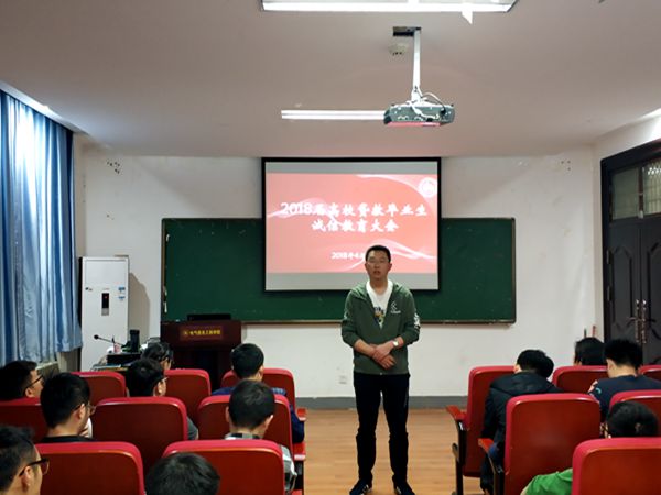 为确保我院国家助学贷款工作顺利进行,加强学生诚信意识,进一步做好2018届毕业生贷款工作,电气信息工程学院于4月3日上午10点在西二楼202召开2018届贷款毕业生诚信教育大会。党总支副书记宋文军老师、学工办主任孔朋老师以及全体贷款毕业生参加会议。
