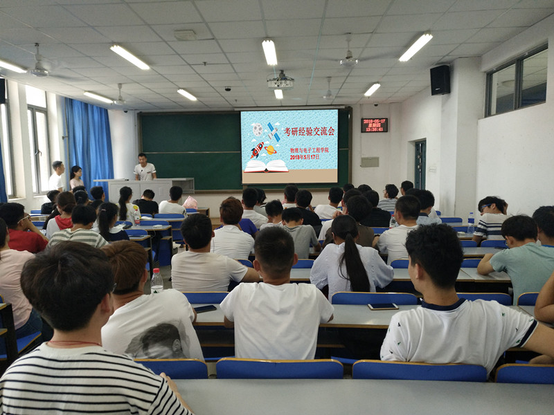 为了促进我院学风建设,激发同学们对考研的热情。5月17日中午13:00,物理与电子工程学院在二教楼704教室举办了考研经验交流会。2018届成功考取研究生的毕业生代表们向全院学生进行了考研经验的分享。