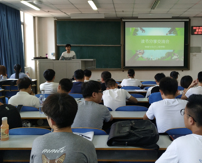 为丰富同学们的课余生活,激发同学们的阅读兴趣,促使同学们养成“爱读书,读好书,好读书”的良好习惯。5月31日上午,物理与电子工程学院在一教709举办了读书分享交流会,我院共计60余名喜欢阅读的同学参加此次交流会。