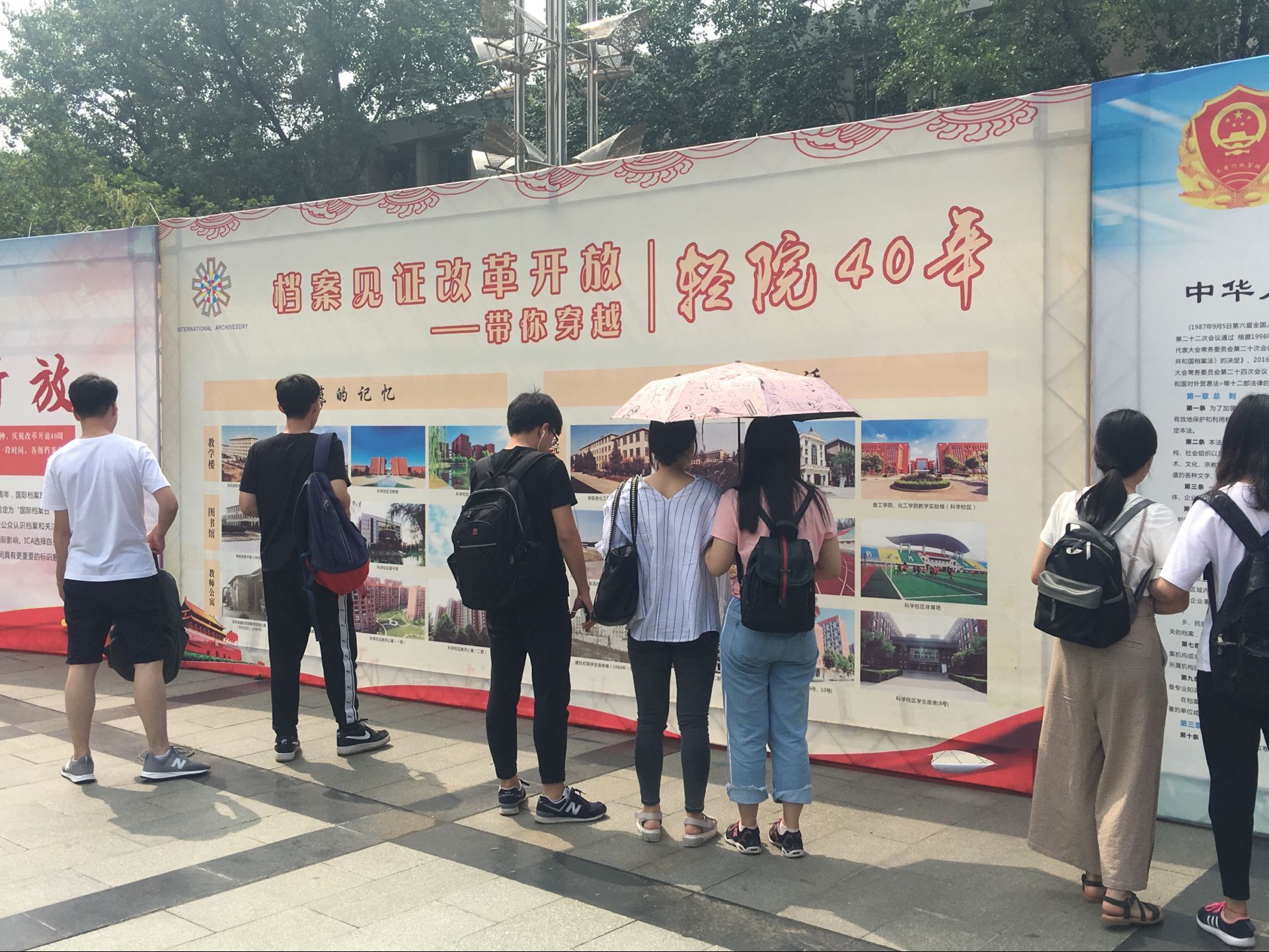 一、通过制作主题展板“档案见证改革开放——带你穿越轻院40年”,以小见大,从轻院“建筑的记忆、历史的变迁(六大学校主建筑的变迁)”这个角度,展示了轻院41年来的建设成就,体现“档案见证改革开放40年”的特殊作用。主题展板吸引了众多学生的目光,即将离校的毕业生们纷纷上前留念,留下特别的记忆,还有有心的同学向档案馆的老师提供了自己拍摄的学校不同时期的照片,用自己的方式记录轻院日新月异的发展变化。通过这个活动,同学们都感受到了改革开放后学校、乃至中国发生的巨大变化。