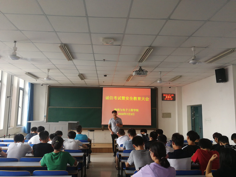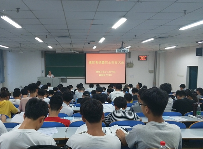 为进一步加强学院期末考试诚信教育,营造良好的考试氛围,提高同学们的暑期安全意识。近期物理与电子工程学院各年级辅导员召开了诚信考试暨安全教育大会。