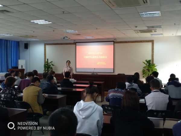 2018年10月18日中午,物理与电子工程学院禹州实习实训动员大会在四教楼503会议室召开,学院党总支副书记李玲、辅导员老师及第八周参加禹州实习实训的2017级同学参加了会议。