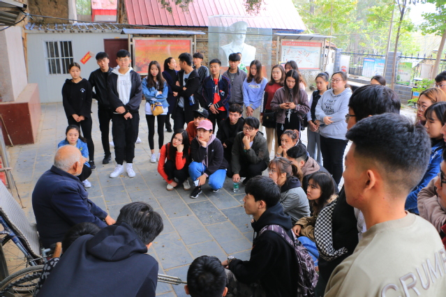 本次活动围绕“猜红歌、唱红歌”、“抗战历史知识竞赛”、“环翠峪八路军后方医院旧址参观学习”、“听抗战老兵讲抗战故事”、“学生党员综合素质拓展”等环节开展,带领大家重温党的历史,接受革命传统教育,提升团结协作能力。在八路军后方医院遗址--巨大古橿树下的一座三孔并排的窑洞,通过历史图片、文献资料,大家了解了八路军后方医院在救治八路军伤员,挽救革命战士的不平凡历程。遗址现在还由一位89岁高龄的抗战老兵守护着,通过这位可敬老人的讲述,大家领略了革命老区军民一家、感人至深的英雄事迹,真切感受到革命老区拥护革命、无私奉献的伟大精神。随后,面对革命先烈塑像,张瑞凤老师带领全体党员同志们重温了入党誓词,深切缅怀革命烈士的英雄事迹,表达对革命先烈最崇高的敬意。