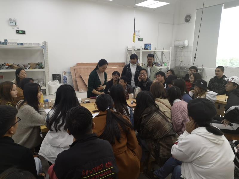 郑老师从茶的六的品种讲起,把不同的茶种与茶文化和学生娓娓道来,重点讲述了不同茶种对茶器的要求,学生们受益匪浅,在提问环节针对学生在课堂上绘制的茶具造型等与郑老师进行了深入的探讨,学到了很多具体实践的知识。