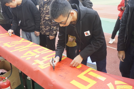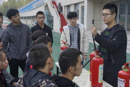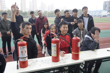 活动中,大学生消防安全协会的工作人员为大家详细讲解了教室、宿舍、食堂、实验室等场所的消防安全知识及灭火器的使用方法、技巧。在“你问我答”消防安全知识趣味竞答环节中,各组同学热情高涨,踊跃答题。题目内容涵盖消防器材的正确摆放与使用、如何预防消防事故的发生、发生消防事故时如何正确逃生求救以及事故后应承担的相应法律责任等多个方面,使同学们在答题中不断增强安全意识、掌握消防安全知识。在趣味游戏“十万火急”中,参赛队员们以接力跑的形式提着灭火器竞相赶往“火场”,你追我赶,颇具火场救火的危急感。在激烈的竞争赛跑过后,进入到了“穿越火线”环节。游戏中“盲人”和“跛子”默契配合,“盲人”在“跛子”的指引下时而大步流星,时而小心翼翼,最终穿越层层障碍,成功逃出“火场”。活动的最后,同学们郑重地在“全民消防,防治火灾”的条幅上签下自己的名字,纷纷表示将用自己的实际行动带动身边人重视消防安全,对生命负责,防患于未“燃”。