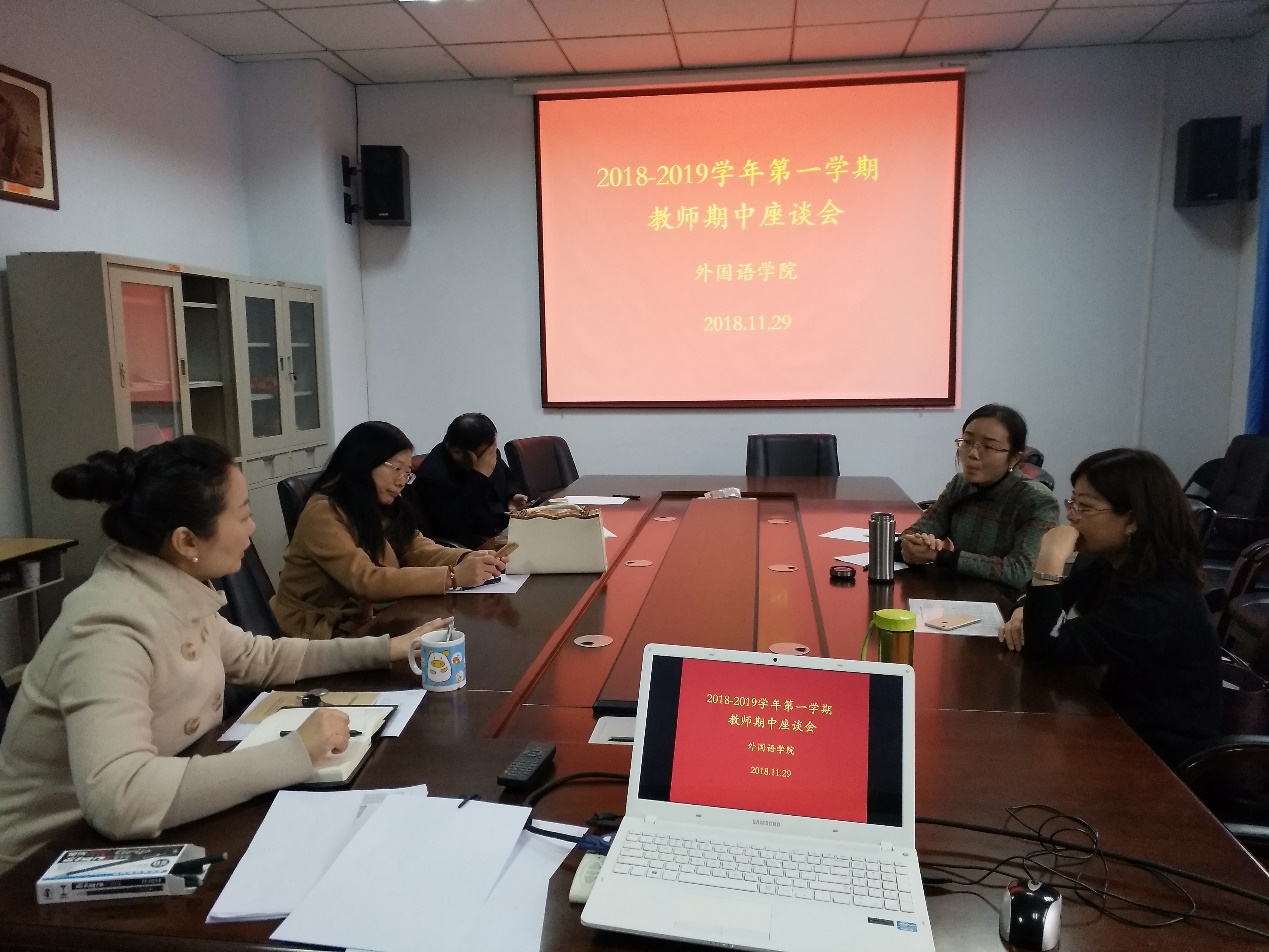 11月28日下午,外国语学院在东二楼306召开2018-2019学年第一学期研究生任课教师期中座谈会。本次座谈会由边铀铀副院长主持,全体研究生任课老师参加。