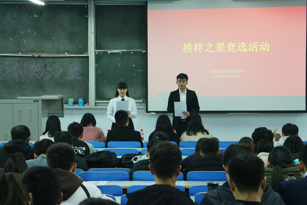 为树立优秀学生典范,引导和激励广大学生向身边的榜样学习,12月3日晚19:00,数学与信息科学学院于东一楼218教室举行了以“榜样力量,照亮初心”为主题的报告会,辅导员张智勤老师、2017级及2018级部分学生参加了本次活动。