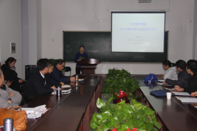 为总结推广学院课堂教学改革试点经验,深入推进信息技术与教育教学深度融合,在前期组织各教研室收听并研讨教育部高教司吴岩司长“建设中国金课”的录音报告之后,12月27日下午,数学与信息科学学院在东一楼310会议室召开了专题教学研讨会,学院全体教师参加了研讨会。会议由副院长黄士国主持。