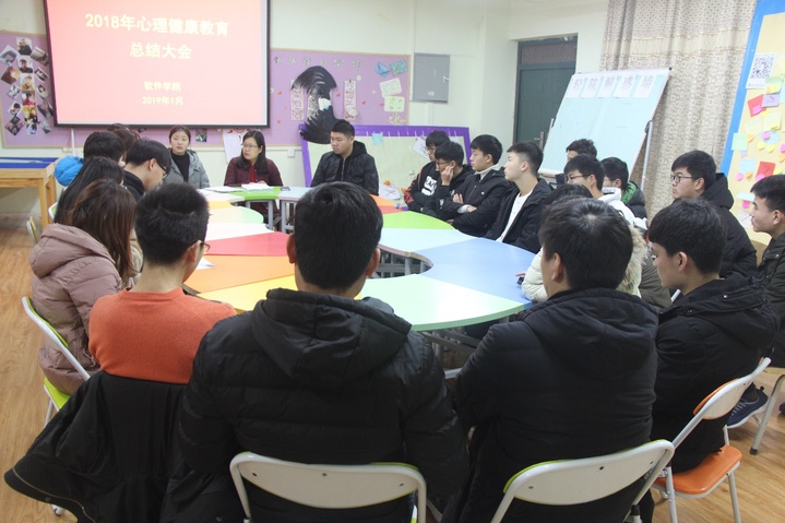 1月7日中午,软件学院在软件楼109室召开心理健康教育工作会议。各班级心理健康委员和心理健康教育办公室全体成员参加会议,会议由学院心理健康教育专职辅导员贾平老师主持。