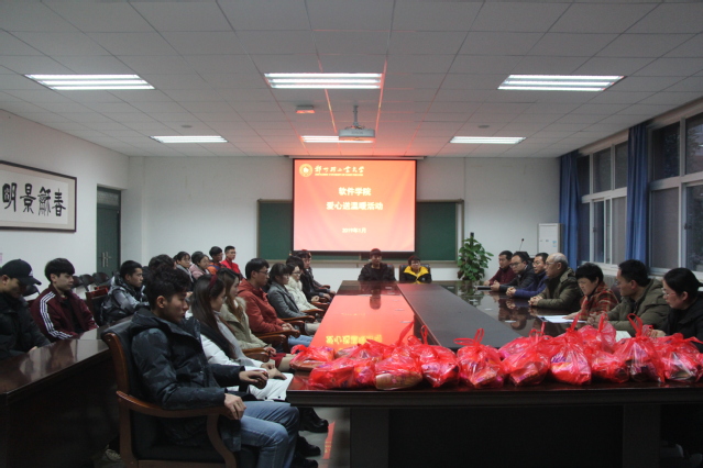 情暖冬日,爱心满溢,1月14日下午,软件学院在软件楼210举办了“爱心送温暖”励志教育活动。学院领导班子成员、教师代表、辅导员、建档立卡户学生参加了会议,会议由学工办主任李辉主持。