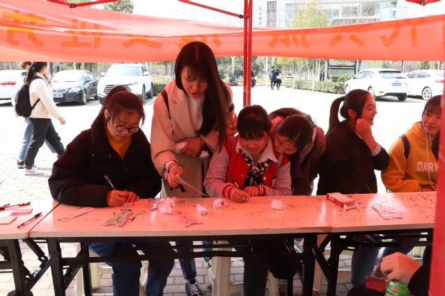 三八国际劳动妇女节是为了庆祝女性在经济、政治和社会等领域做出的重要贡献和取得的巨大成就而设立的节日。中午时分,在工作人员的热情介绍与引导下,同学们了解了三八妇女节的由来,并将自己珍藏在内心的话语写在便利贴上,粘贴在精心制作的宣传板上,留下美好的祝愿,分享点点滴滴的温暖与爱。路过的同学们积极参与活动,他们有的写给伟大的母亲,有的写给授业的恩师,有的写给自己的同学、舍友,也有的写下自己对生活的美好期盼与希冀。“奋斗的青春最美丽!”“自信、自立、自强,做最好的自己。”“一路上有您的教导,才不会迷失方向;一路上有您的关注,才更加自信勇敢。老师,谢谢您!”同学们用手中的笔倾诉着心中的感情,用文字描述温暖与力量,传递着满满的正能量。