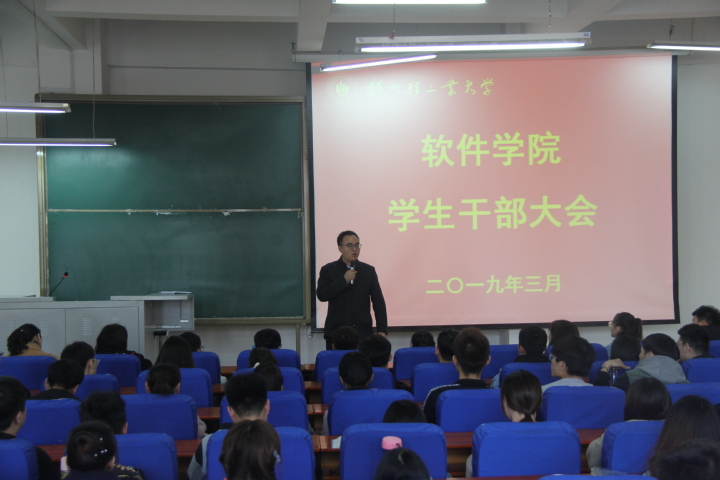 3月12日中午13:00,软件学院在软件楼219室召开了新学期全体学生干部大会,学院党总支副书记马欢老师、全体辅导员、各班级班委和各学生组织干部共200余人参加了此次会议。会议由学院学工办主任李辉老师主持。