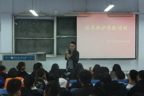 为进一步响应我校“安全教育月”的号召,提高广大同学的安全防范意识和应急救护能力,让同学们掌握基本的应急救护知识。3月22日下午,数学与信息科学学院在东风校区东一楼218教室举办了以“生命至高无上,安全责任为天”为主题的应急救护培训活动,大一大二部分学生代表参加了此次活动。