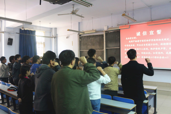 会上,张文卿老师简单介绍了国家助学贷款的相关政策和近几年我院贷款毕业生的还款情况,并以毕业生违约的真实案例讲述了贷款逾期和恶意欠款的严重危害性,希望全体贷款毕业生提高诚信还款意识,恪守诚信,按时还款,如期履约,希望同学们在今后的学习和工作中树立诚信的处世态度,坚持诚信立身,诚信立学,诚信立言,诚信立行,塑造诚信人生。同时,张老师就还款流程和与会同学作了认真的交流和详尽的解答。最后,全体与会人员进行了助学贷款诚信宣誓。