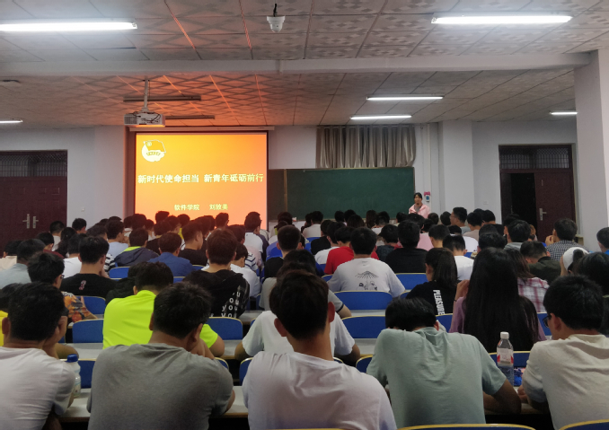 5月19日上午10点,软件学院在禹州实习实训基地1号实训楼B403室开展“新时代使命担当,新青年砥砺前行”微团课活动。软件学院禹州实习实训基地2017级180余名学生参加了此次活动。