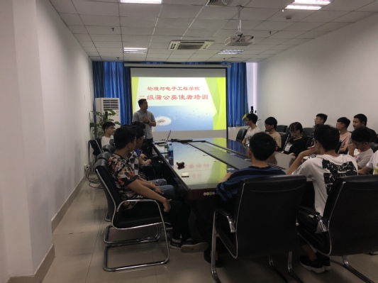 为进一步加强学院“二级蒲公英使者”管理,提升心理部成员、心理委员、宿舍心理信息员工作能力,按照学校心理健康教育中心统一部署,5月26日上午,物理与电子工程学院积极开展“二级蒲公英使者”培训工作,学院心理专职辅导员王冠玺老师、学院心理部成员、班级心理委员、宿舍心理信息员参加了此次培训。