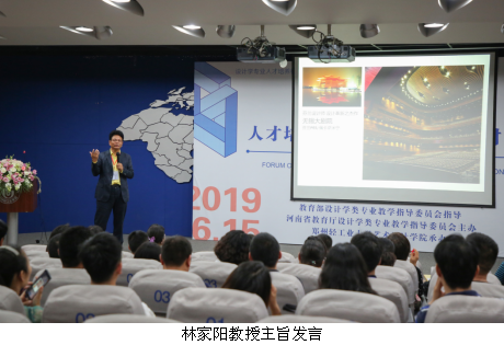 首先,林家阳教授以《设计学院终究替代商学院》为题,引用乔布斯的经典语录,从独特视角分析中国设计学发展存在的问题,分别从教师队伍搭建、建立民族文化自信、跨界创新和新技术语境下的教学模式等方面展开论述,指出设计学学生应掌握“四会”(会言谈、会文字、会交流、会创意),并呼吁中国设计教育要自信、自爱、自强。