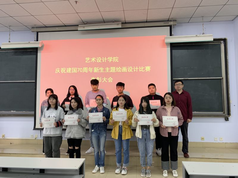 本次比赛自9月7日开始,历时10天,要求以“我和我的祖国”、“我爱你,中国”为主题开展绘画和设计。新生同学们展现出了高涨的参赛热情,总计上交作品近百幅,经学院评审,最终共选出一等奖五名,二等奖十名,三等奖十五名。会上,黄老师宣读了获奖学生名单,并为获奖学生颁发了奖品和荣誉证书。孙老师对比赛进行了总结,并鼓励同学们在今后的学习生活中,积极参加各种活动,锻炼自己的能力,全面提升综合素质。