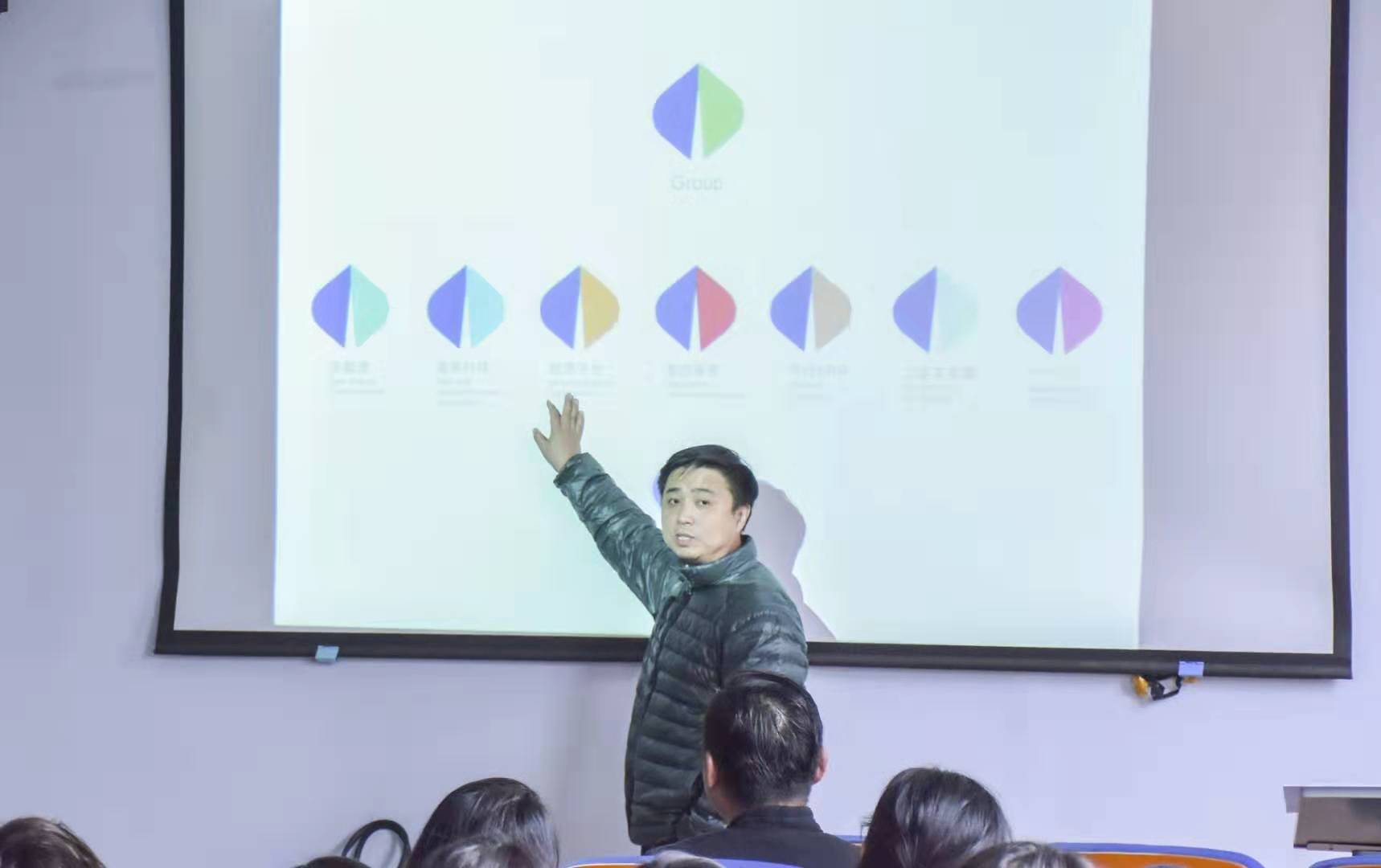 开幕式结束后,柴俊锋先生和赵勇先生分别针对车标设计的案例展开一场别开生面的讲座。柴俊峰先生用自己的实际经验向学生讲述了品牌设计过程中如何构思以及设计如何以人为本,简单而有力的阐述了品牌与企业之间的关系。赵勇先生在讲座中针对怎样抓住品牌特点进行了深入的探讨,并且对各位学生给予了厚望。