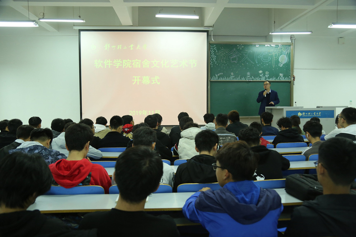为丰富校园文化生活,强化宿舍阵地教育,促进优良学风创建,11月7日中午,软件学院科学校区软件楼503举办宿舍文化艺术节开幕式,软件学院党总支副书记马欢、分团委书记刘放美和各班级班长,生活委员、宿舍长参加开幕式。