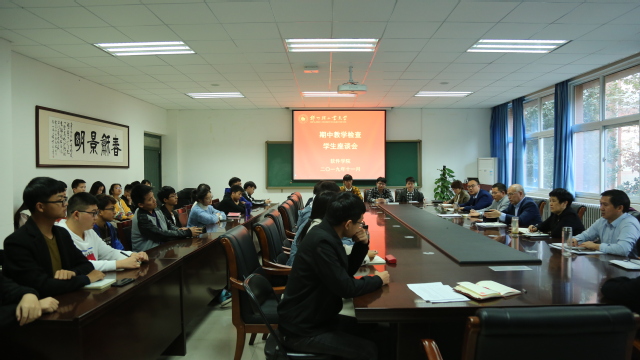 11月14日下午,软件学院在软件楼210召开期中教学检查学生座谈会。软件学院班子成员、各教研室主任和各年级学生代表30余人参加了座谈会,会议由副院长张志锋老师主持。