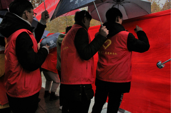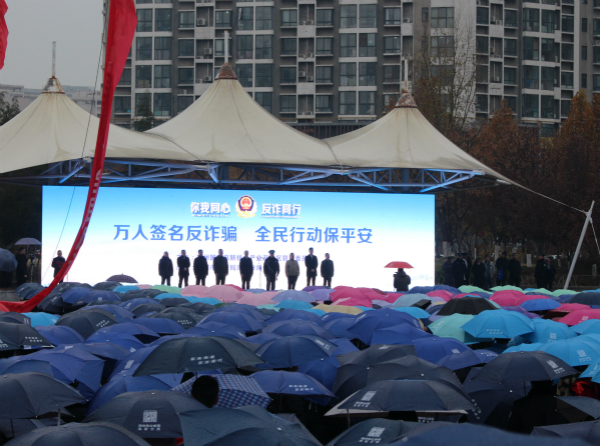 细雨霏霏、气温骤降,寒冷的天气也阻挡不了人们前来参加活动的脚步。上午10时许,活动正式开始,郑州市高新区党工委、管委会、公安分局、各办事处、园区、高校的相关领导和广大群众、各界人士共5000余人参加。首先,市政府、高新区党工委及管委会、市公安局高新区分局相关领导分别发表讲话,提醒广大市民群众增强防范电信诈骗的意识,提高防骗识骗能力,避免财产损失,呼吁广大市民发扬“主人翁”意识,在全区迅速掀起防范打击电信网络诈骗犯罪的高潮,全社会一起努力,齐抓共管,综合治理,共同打赢打防电信网络诈骗犯罪攻坚战,为建设文明、和谐、安全、稳定的智美新城做出积极贡献,争当出彩郑州的建设者、捍卫者,出彩郑州的建设者、捍卫者,共营和谐美好安定的城市环境。最后,广大市民纷纷围观案例宣传墙,领取宣传页,我院师生随同全体参与者一起在签名墙、签名布上留言签字,助力高新区全面打赢防范电信网络诈骗犯罪攻坚战。