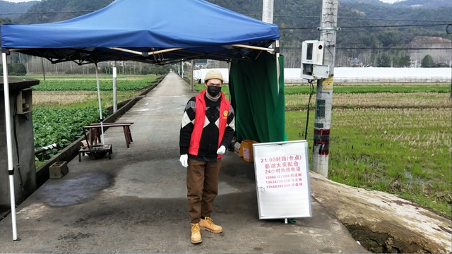 材料物理1701班的徐钊,来自浙江省杭州市富阳区渌渚镇六渚村,作为一名党员,在全民战疫的时刻,他义无反顾地投入到全民防疫的战争中,主动联系村支书,申请参与本村防疫的工作,主要负责对出入村的人员情况进行登记。他说,党员要时刻牢记党的宗旨,希望通过积极工作能够继续让村里保持“零感染”的安全级别,为这次防疫攻坚战贡献一份力量。