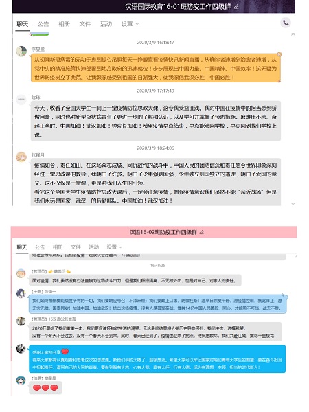 为响应国家号召,贯彻学习习近平总书记防疫相关讲话精神,坚定打赢特殊战“疫”的信心,3月9日至3月10日,外国语学院组织全院学生观看了“全国大学生同上一堂疫情防控思政大课”,各年级辅导员老师参加到各班的活动交流中。