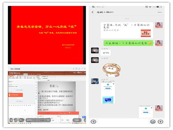 活动中,各团支部采用QQ群、微信、钉钉等平台,以视频、直播、语音等方式,带领全体同学线上重温雷锋故事,学习雷锋精神的时代内涵及疫情防控的相关知识;开展“学雷锋、齐战疫”知识竞答,鼓励青年学子见贤思齐,择善而从,学习新时代“雷锋精神”,积极参与志愿服务,贡献出自己的力量;在各班互动环节,同学们也踊跃发言并且表示在新时代一定会继续认真学习和传承雷锋精神,将雷锋精神落实到行动中去,争当实践雷锋精神的时代楷模。广大青年学子还结合近期来的网络课程学习经历,交流所思所想,树立新学期奋斗目标。