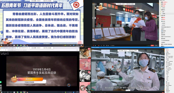 此次活动分为“出彩青春”“战‘疫’青春”“奋斗青春”“绽放青春”4个篇章,包含了第24届“中国青年五四奖章”风采录、“让青春为祖国绽放”青春故事分享会、青春思“享”课五四专辑、团团直播间对话访谈、各地团日活动精彩展示、优秀文化产品展播等主题活动,此次别开生面的网上主题团日活动隔着屏幕让同学们进一步了解了五四青年,感受全国各地团员青年爱国担当、团结奋进的青春风采。通过学习,同学们备受鼓舞,纷纷表示要继承和发扬五四精神,用实际行动展现新时代青年的蓬勃朝气和责任担当。